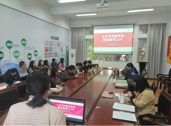 3月8日下午,人文与管理学院于仓山校区3楼学院会议室召开2022-2023学年第二学期期初教学工作会议。学院党总支书记林朝阳、院长陈勤、党总支副书记陈清芬、副院长谢姗姗,综合科科长张继驰出席本次会议,全体教职工参会,会议由副院长谢姗姗主持。
