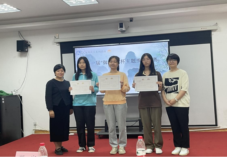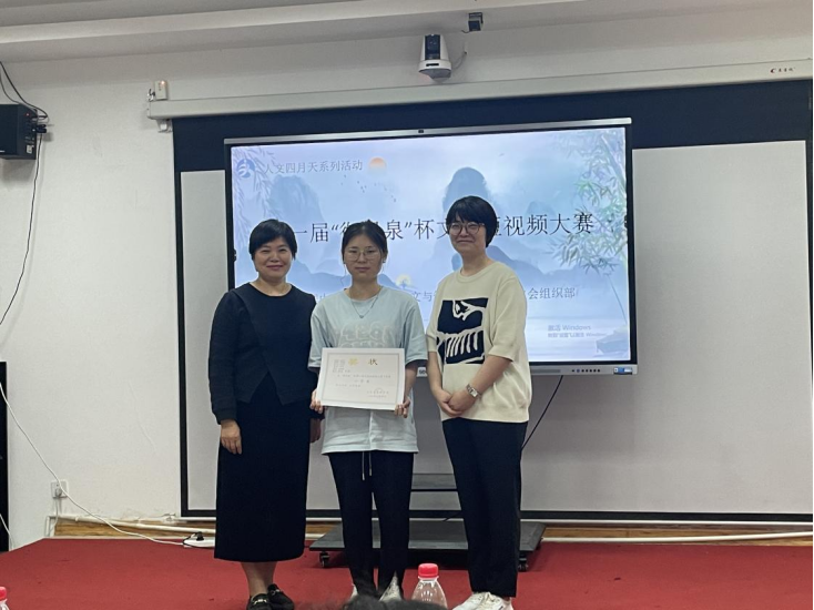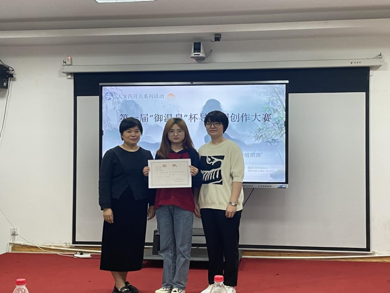 同时,现场还邀请御温泉候巧玲总经理、导游教研室主任谢颖老师分别为“人文四月天”系列活动之“御温泉”杯第一届文旅短视频大赛、御温泉”杯第一届主题推文大赛、“御温泉”杯第一届导游词创作大赛进行颁奖。