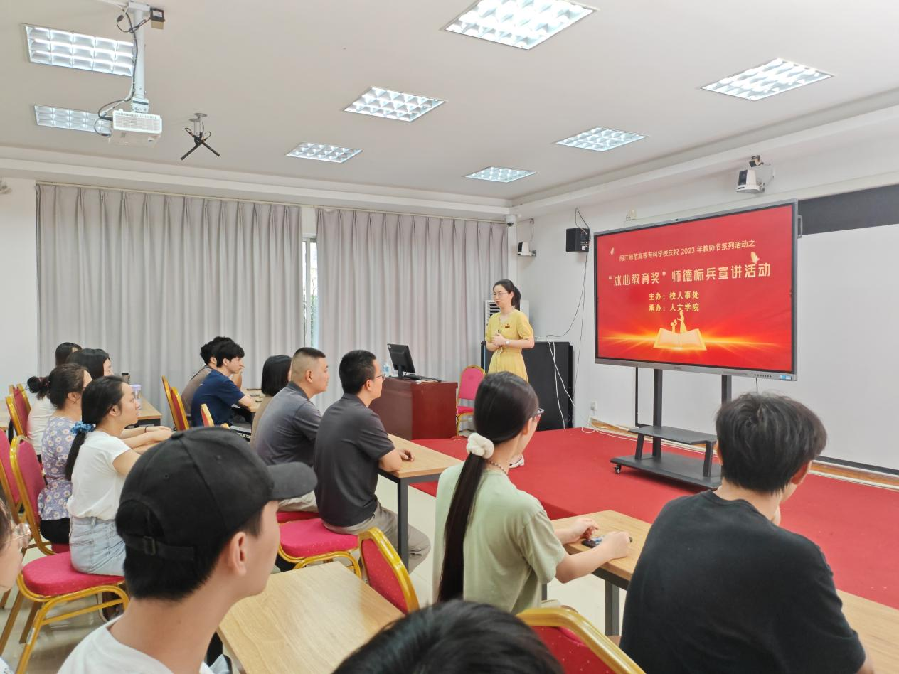 教师是立教之本、兴教之源。为突出师范生培养师德师风第一标准,引导师范生扣好师范生涯“第一粒扣子”,9月27日人文与管理学院“冰心教育奖”获得者余晶老师为22级心理健康教育班全体同学开展师德师风讲座,学院教师代表参与本次讲座。