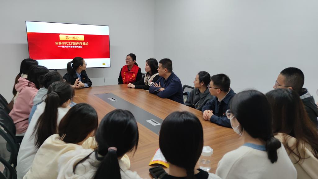 本次主题党课的题目为《习近平新时代中国特色社会主义思想内涵》,余晶同志主要从习近平新时代中国特色社会主义思想的创立、习近平新时代中国特色社会主义思想的核心内容、如何坚持和发展习近平新时代中国特色社会主义思想三个部分开展党课的教学,让大家深刻认识到深入学习贯彻习近平新时代中国特色社会主义思想,是全党一项长期的重大政治任务,是广大党员干部的基本功、必修课。