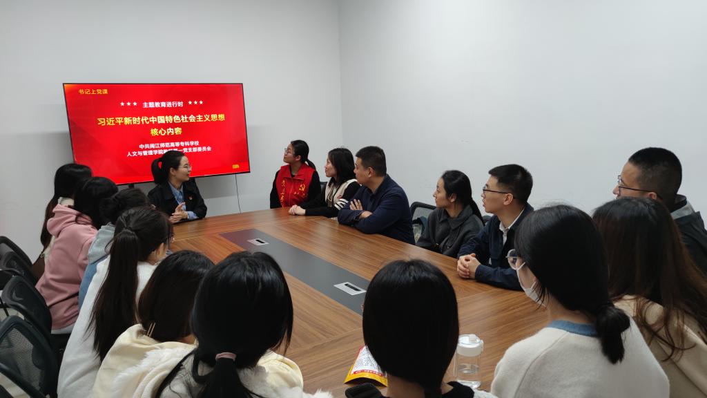 为了进一步加强校社党建工作,人文与管理学院教师第一党支部副书记余晶同志于2023年11月24日上午赴竹林境社区居委会开展主题党课,参加本次党课学习的有人文与管理学院教师第一党支部党员、人文与管理学院学生支部党员、竹林境社区老党员。