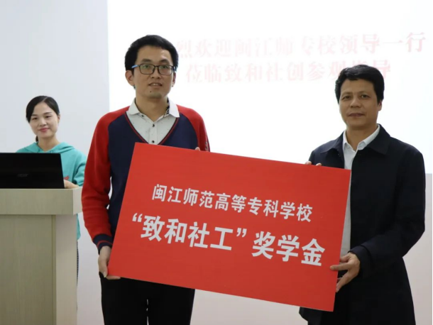 为推动社会工作人才队伍建设,搭建校社合作平台,强化校社联结共育人才培养模式。11月25日下午,我校社会工作专业与福建省致和社会组织孵化与创新中心校社共建暨座谈交流会在致和三社共享园召开。闽江师范高等专科学校校长杨建义、学生处处长郭静静、人文与管理学院教师余晶等老师,福建省致和社会组织孵化与创新中心理事长夏晋城、泉州区域副总监谢丽珊等有关人员出席会议。