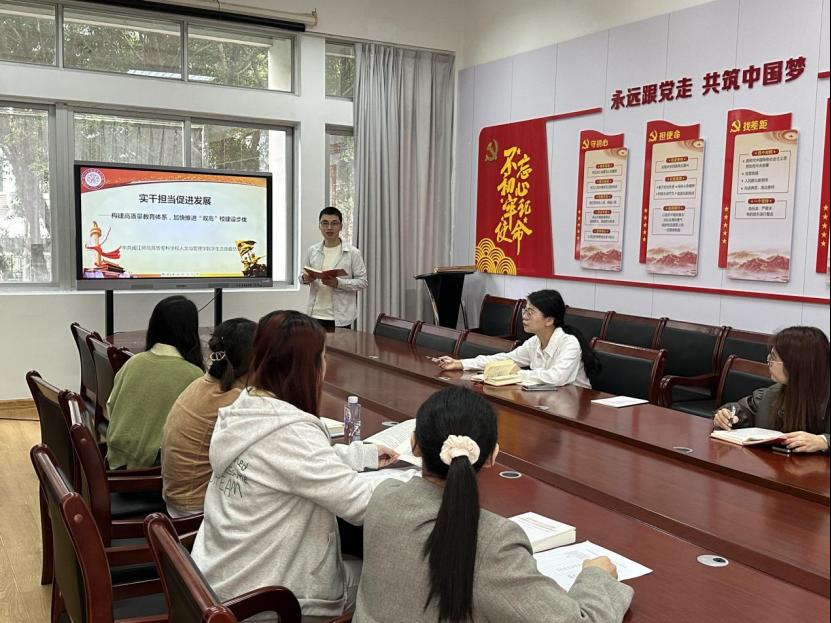 主题教育进行时|人文与管理学院学生党支部开展“实干担当促进发展——构建高质量教育体系,加快推进“双高”校建设步伐”和“践行宗旨为民造福——坚持以师生为中心的发展思想,努力办好人民满意的教育”主题教育专题学习研讨