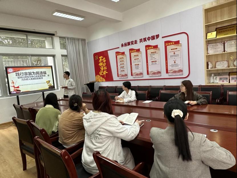 支部书记叶懿蛟强调,作为教师党员,我们要坚持原则,坚持党的全面领导、坚持社会主义办学方向、坚持落实立德树人根本任务、坚持办好人民满意的高等教育、坚持维护师生根本利益,开展斗争,推动发展,在解决实践难题中练就真功夫。