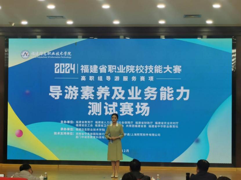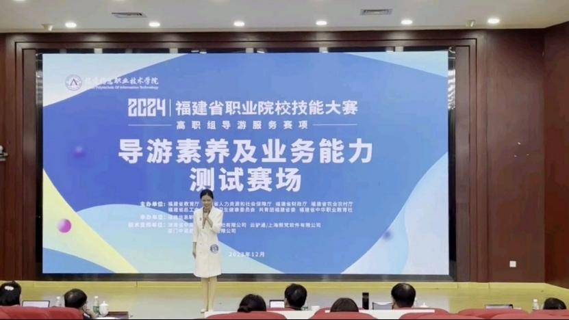 2023年12月16日,2024年福建省职业院校技能大赛(高职组)导游服务赛项在福建信息职业技术学院举办,全省共64名选手参加此次大赛。闽江师范高等专科学校导游专业赖慧玲、林丽芳两位同学(指导老师:刘佳玲、黄阵仙)代表学校参赛,分别斩获一等奖、二等奖。