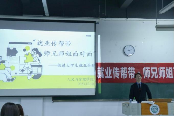 12月10日,人文与管理学院于教学楼3-104教室开展“就业传帮带,师兄师姐面对面”经验分享会,围绕就业主题与在校大学生面对面交流分享,现场回答了同学们提出的关于职业规划、面试技巧等多个方面的问题,帮助同学们树立良好的就业意识。