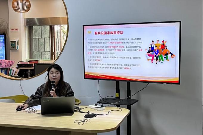 图1:陈少霞老师进行服兵役国家教育资助政策宣讲