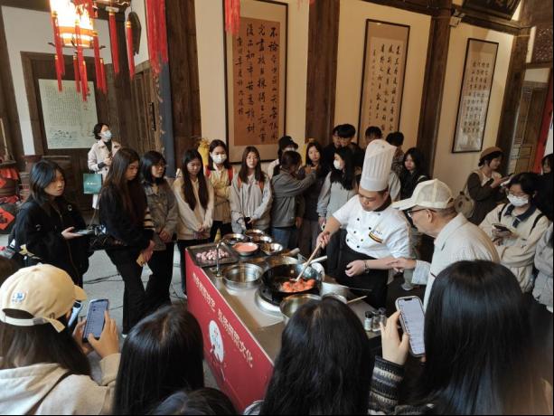 活动当天,2023级全体学生先后参观了林则徐纪念馆、中国船政文化博物馆,仔细了解了清代民族英雄林则徐“虎门销烟”的英勇事迹,组织百姓修水渠发展农业,又赴南疆修渠,这些富国强兵振兴中华的举动让这位福州名人的形象在同学们的心里有了更直观深刻的印象。随后大家又参观了位于福州市马尾区的中国船政文化博物馆,一部船政史,半部中国近代史,同学们亲眼目睹了船政学堂的设立如何培养近代海军,感受到革命先辈的奋斗精神,吃苦精神和牺牲精神,完成了一次深刻的爱国主义教育。活动当天,同学们还观摩闽菜的制作过程,在福州闽菜大师的详细讲解和示范下,了解了福州人的饮食习惯,还品尝了福州美食,不少同学现场学习制作了福州名小吃锅边糊。