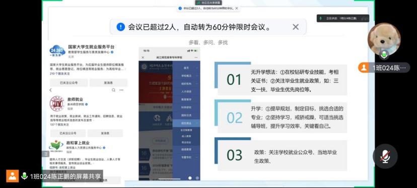 陈正鹏学长还分享了自己在求职、面试、工作等方面的经验和技巧。他强调了自我定位、职业规划以及持续学习的重要性。同时,他还向同学们普及了关于选调生、“三支一扶”等相关政策的内容,强调了关注各省、市、县关于就业的相关信息,多角度并且全方位了解就业发展方向和趋势。