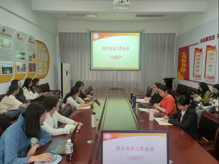 为进一步加强安全工作,做好防护工作,2024年4月24日中午,人文与管理学院于仓山校区3号楼会议室召开4月份的安全工作会议,会议由学院党总支副书记陈清芬主持,学院院长陈勤、副院长谢姗姗、综合科科长张继驰、学院专业教师及学工团队出席本次会议。