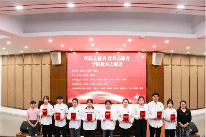 图8:陈清芬副书记、谢姗姗副院长为校明星志愿者、校优秀志愿者、学院优秀志愿者代表颁奖