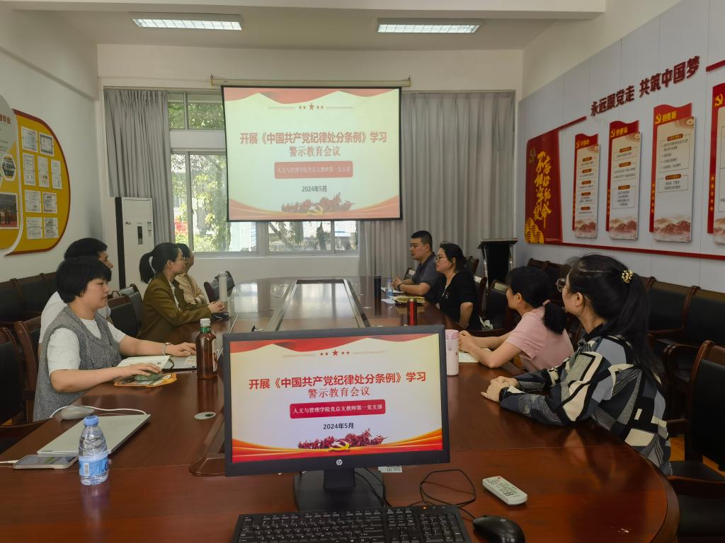 2024年5月8日下午,人文与管理学院党总支所属各支部于仓山校区开展党纪学习教育专题学习与警示教育学习。本次学习的主要内容为:《中国共产党纪律处分条例》;中央党的建设工作领导小组召开会议研究部署党纪学习教育工作(《人民日报》(2024年04月04日 第01版));中办印发《通知》在全党开展党纪学习教育(《人民日报》(2024年04月08日 第01版))。本次学习由各支部书记分别主持,各支部教师党员参加。