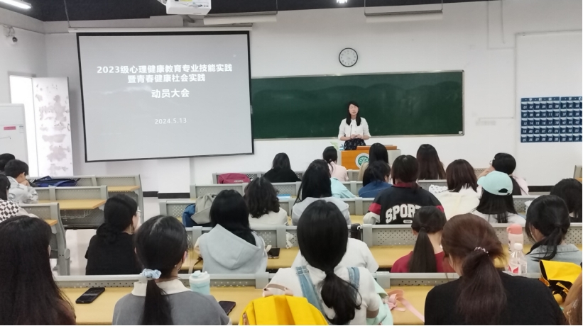 为大力培养学生的劳模精神、劳动精神、工匠精神,弘扬劳动光荣、技能宝贵、创造伟大的时代风尚,进一步在全社会营造关心支持职业教育改革发展的良好氛围,我院心理健康教育专业学生将于2024年5月20日-26日面向广大中小学的学生和家长开展心理健康教育专业技能实践暨青春健康社会服务。为保障学生实训工作的顺利开展和进行,心理教研室专业教师、心理健康教育专业班主任张宝英老师于2024年5月11日、13日,在仓山校区教学楼3-209、3-404教室分别为22级、23级心理健康教育专业学生开展综合实训动员会。