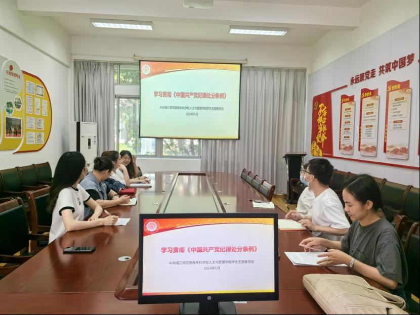 2024年4月28日下午,人文与管理学院学生党支部在仓山校区3-301B开展关于《中国共产党纪律处分条例》的学习和警示教育学习会议。