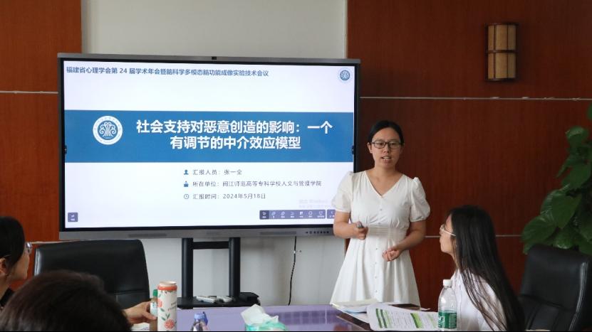 此次会议有8场主报告,5个分论坛,内容涵盖心理学与社会经济发展、文化与社会心理、发展与教育心理、情绪与健康心理、普通心理与实验心理等不同方向的相关研究,我校青年教师张一全在心理学与社会经济发展分会场中进行了《社会支持对大学生恶意创造力的影响:一个有调节的中介效应模型》的研究报告。