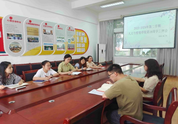 为部署即将到来的暑假相关工作安排,确保学院学生工作的有序进行,6月19日,人文与管理学院学工团队于3-301B会议室召开2023-2024学年第二学期第18周学工例会,人文与管理学院全体辅导员参加本次会议,会议由黄益群老师主持。