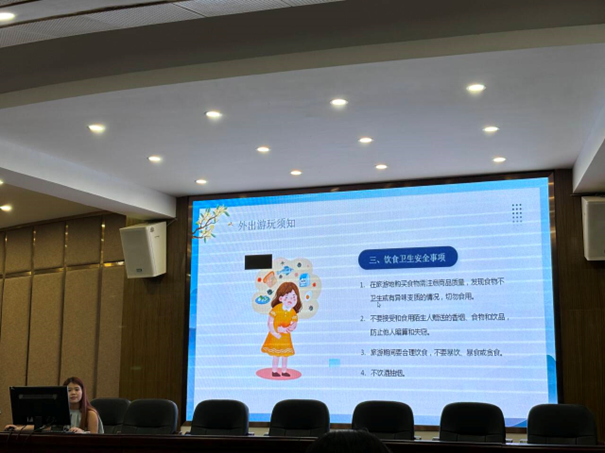 本次主题教育主要从食品安全、旅行安全、网络安全、交通安全、消防安全等方面进行讲解。活动中,辅导员们还特意提醒学生要规律作息,适度的锻炼,留校的学生要遵守校纪校规,注意宿舍用电安全。