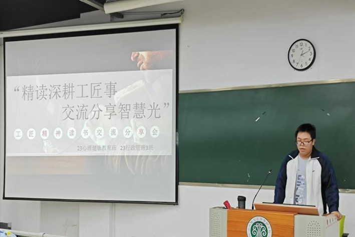 为了培养和传承工匠精神,提高学生的专业技能和职业发展水平,加深对工匠精神本质的理解,我院于10月25日在3-404教室成功举办了工匠精神读书交流会。此次活动由23级行政管理3班的卓伟强同学主讲,23级行政管理专业和23级心理健康教育专业的学生参与。交流会上,同学们深入探讨了工匠精神的深层含义及其在当代社会的显著重要性,踊跃分享了自己对工匠精神的阅读体会。本次活动不仅加深了学生们对工匠精神的认识,而且激发了他们在未来学习和职业生涯中追求卓越、精进不休的热情。