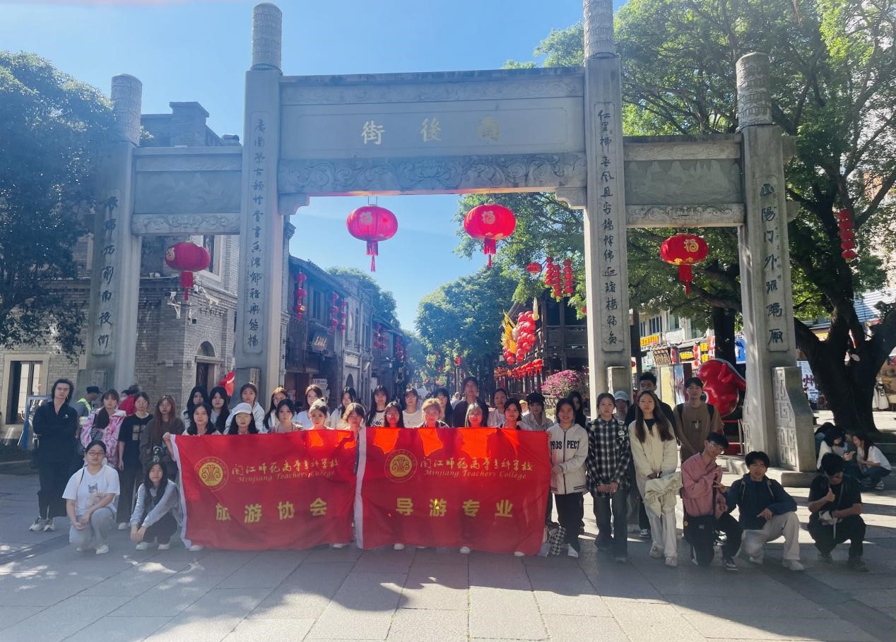 为了提高人才培养的质量,涵育劳动精神和服务意识,充分发挥新媒体优势,我院导游专业学生于2024年11月2日在专业实训指导老师许思亮的带领下前往福州三坊七巷景区开展专业实训暨志愿讲解服务活动。