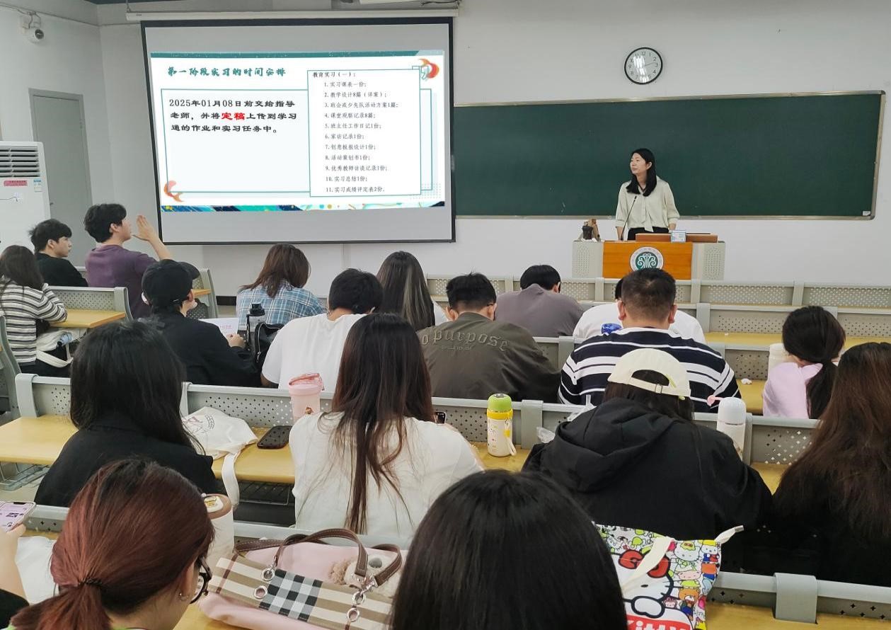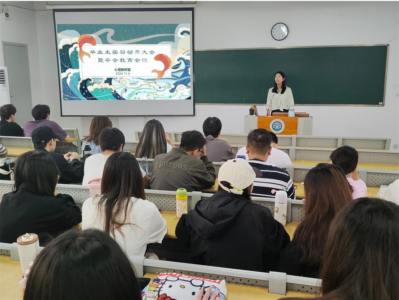 为全面做好22级心理健康教育师范生教育实习工作,引导学生进一步明确实习的目的与意义,提高学生的教育教学和专业实践能力并确保实习期间的安全稳定。11月4日上午,人文与管理学院心理教研室于仓山校区教学楼3-404教室召开师范生实习动员大会暨安全教育会议。本次会议由心理专业张宝英老师主持,22级心理健康教育专业全体同学参加。