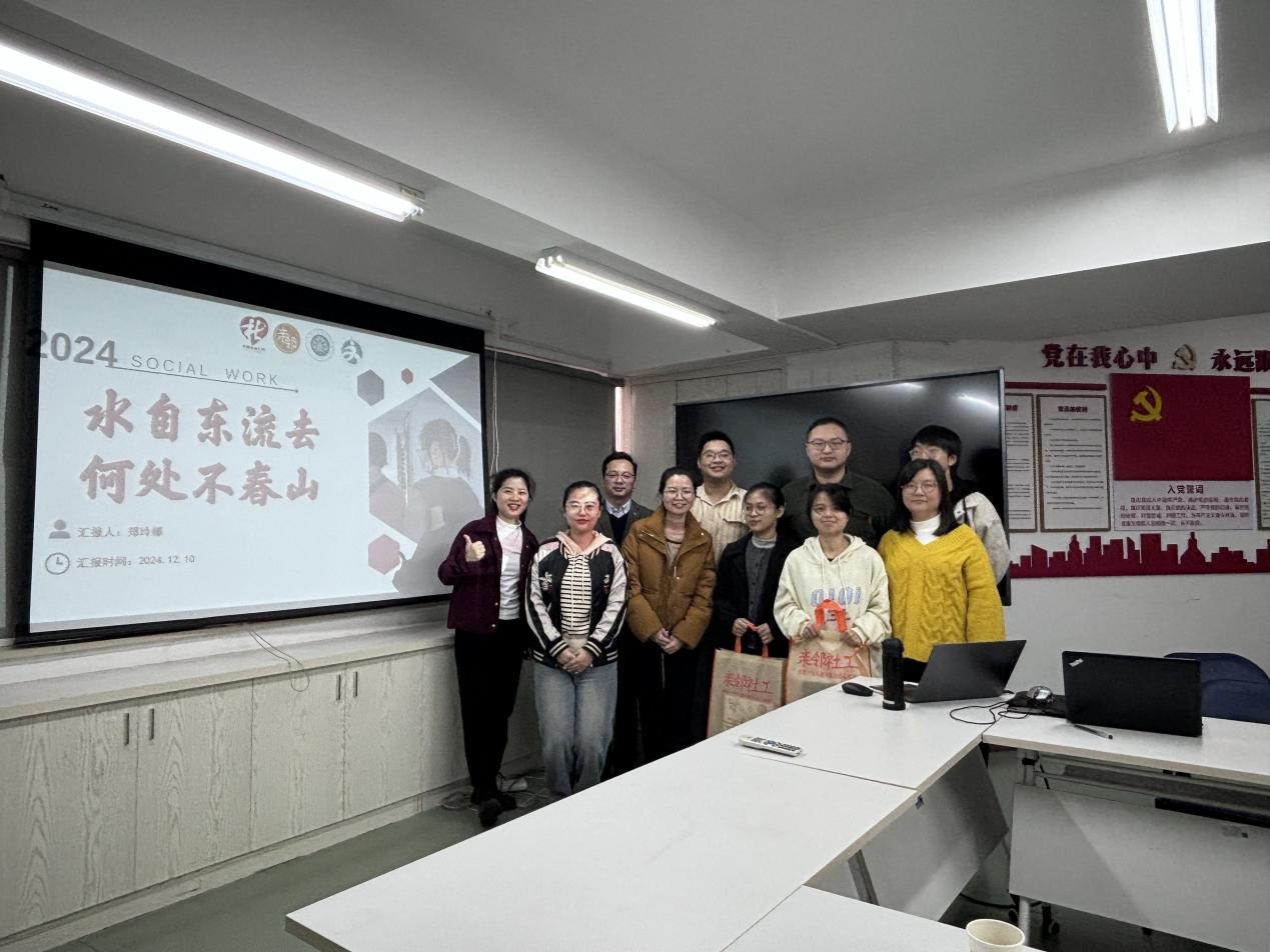 首先,福州亲邻社会工作服务中心负责人洪琳介绍了机构发展情况与当前主要服务范围,展示了中心在福州各个地区与社区开展社会服务的成果。随后在该机构开展适应性顶岗实习的我校社工毕业生进行了实习总结汇报,机构社工们对学生的实习进行了评价。交流会上,教研室主任余晶希望同学们能够脚踏实地,认真负责,发挥出社会工作专业学生在一线服务岗位上的热情与能力,同时通过实习合理规划未来就业方向。党总支书记王海波谈到,从事社会工作,需要带着一颗助人的热心,并细致扎实地服务群众。校企双方也对深化合作、人才培养方式、搭建学生实习实践平台等内容进行了深入交流。
