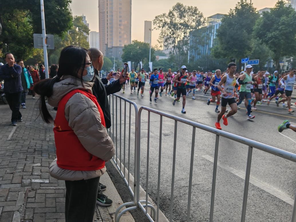 志愿者们在赛事期间密切配合,精准把握各项事宜,高质量完成交通疏导、路面垃圾清理等任务,帮助市民及时了解赛事路线并合理安排出行路线,全力保障赛道秩序。在完成赛事相关服务的同时,志愿者们不忘为参赛者呐喊助威,以饱满的热情和负责的态度为马拉松选手提供暖心周到的服务。