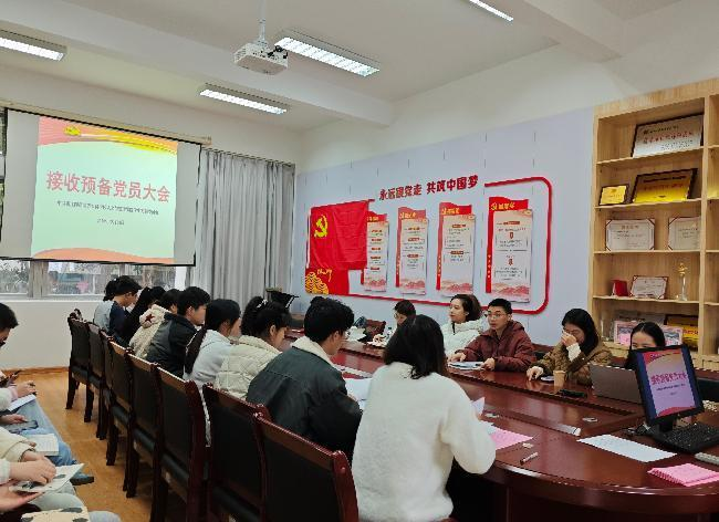 本次会议主要讨论接收李铭雅等9位发展对象为预备党员,会议严格按照党组织接收预备党员的程序进行。会上,发展对象汇报对党的认识、入党动机、本人履历、家庭和主要社会关系情况等,入党介绍人做了相关情况介绍,与会党员对发展对象进行充分讨论后采取无记名投票方式进行表决。