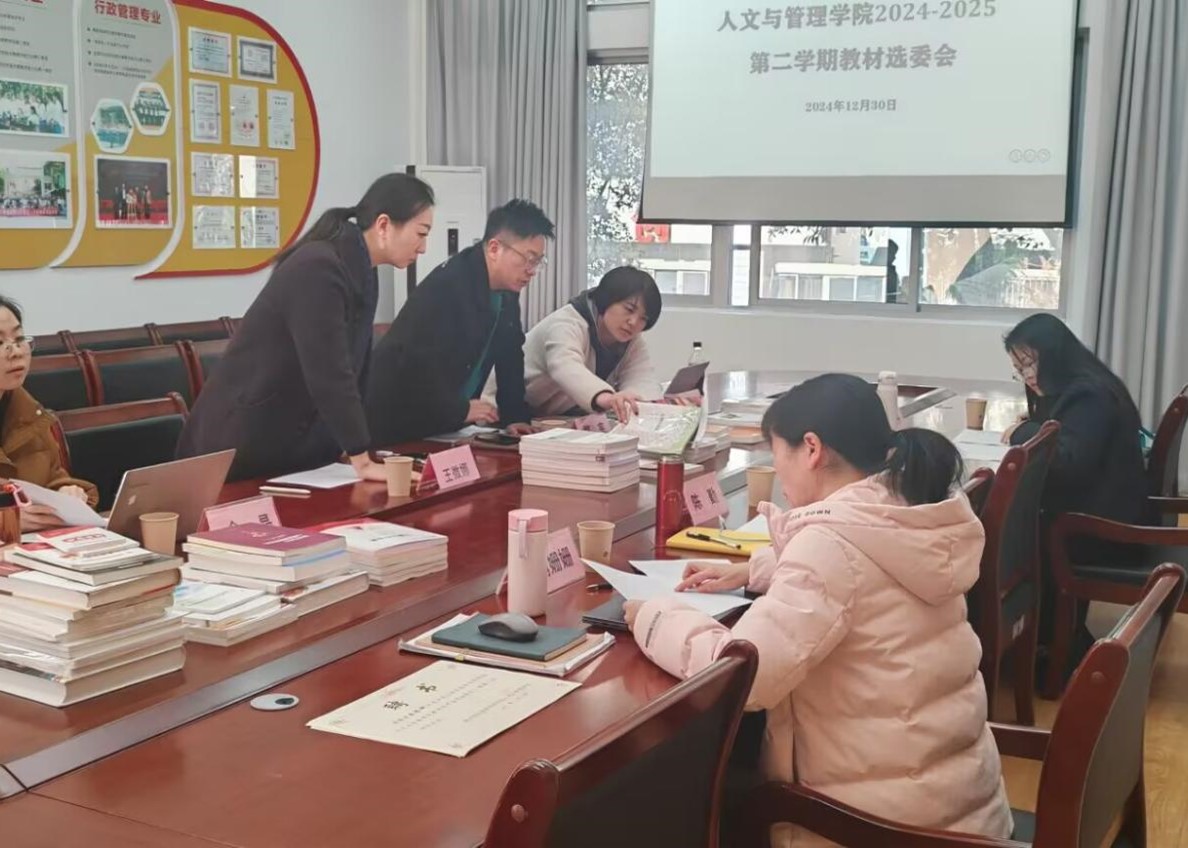 为进一步加强我院教材建设,提高教育教学质量,2024年12月30日,人文与管理学院教材召开2024-2025第二学期教材选委会。本次会议由副院长谢姗姗主持。