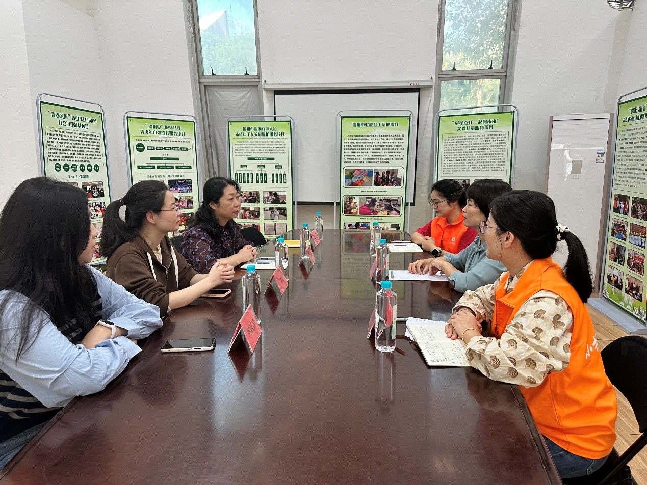 图1:与福州市青少年事务社会工作者协会、福州市小桔灯社会工作服务中心负责人开展交流