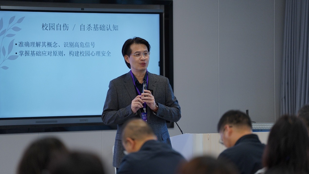 图7屏东大学咨商辅导学系林聪仁助理教授作《辨证行为治疗校园自伤/自杀干预实务操作》主题讲座