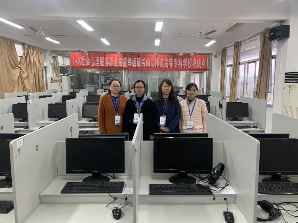 2021年12月25日,人文社科系在闽江师范高等专科学校仓山校区4号教学楼602机房举行了1+X“社会心理服务”职业技能等级证书(中级)全国统考。有80名考生参加本次考试,其中心理咨询专业的学生70名、社会工作专业的学生10名。人文社科系心理教研室谢姗姗主任,心理专业教师赖红梅、白丽、张一全担任本次考务工作