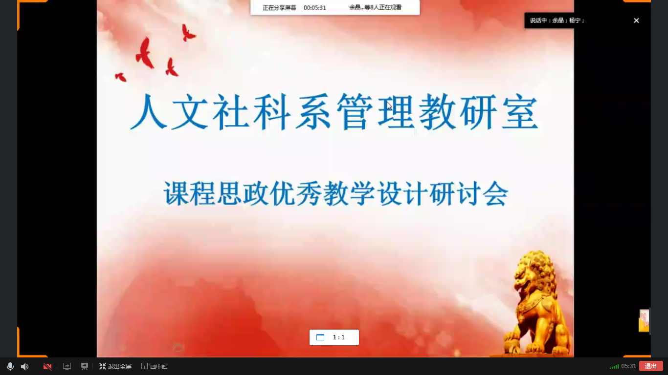 图1:人文社科系管理教研室开展课程思政优秀教学设计研讨会