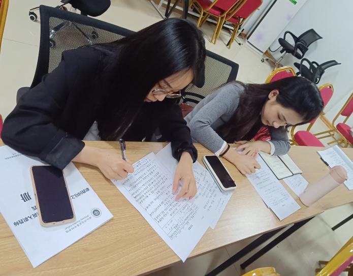 本次培训主要安排了四类跟岗任务。一是听课评课,跟岗教师随堂走进专业核心课程、专业群平台课程、专业群拓展课程、创新创业类课程、岗证融合、课证融通课程,进行听课,撰写听课笔记,交流心得体会。二是安排了系列的教研和研讨,包括“新教师成长之路”、“岗课赛证一体化教学实施”、“教学能力大赛备赛策略”等主题交流活动。三是融入校内实训中心,如观摩“青少年心理健康”省高校应用文科研究中心,体验沙盘、放松、游戏等各种方式的心理咨询。四是行业参访与交流,赴闽越水镇景区、福州金宝贝早教中心、福州市青春健康指导中心、加洲健康管理有限公司进行参观座谈,调研行企校的人才供需对接情况。