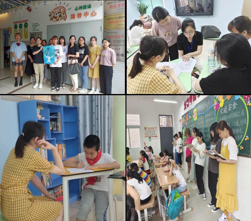 上午,实习小分队全体成员在钱塘小学北区进行心理测评量表筛选任务以及个案咨询接待工作。在此期间,翁洁老师对队员们的咨询接待工作进行指导,重新讲解了在个案咨询中需要关注的问题和其他有关知识。下午,副队长欧阳淑婷带领五名队员前往湖前校区进行见习活动。接下来,湖前校区的队员们到一年级旁听路坤雨同学和黄格格同学以及三年级陈湘娟同学的心理健康课。课程结束后,陈菁老师给队员们进行了评课。通过此次教学,队员们对课程设置和课堂管理有了更深刻的认识。最后,陈菁老师和队员们一起讨论了下周的“525”心理月赛活动和队员们下周的工作任务。