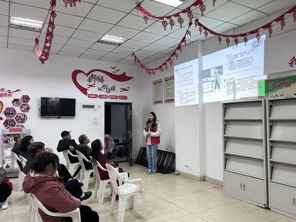 本次活动于2021年12月23日下午开展,以“医疗小课堂”为主题,旨在让老年人了解医疗保健方面的知识,帮助老年人提高健康方面的意识,促进老年人能够学会使用网络上的医疗服务,使用更便捷的医疗保障,有效跟进解决老年人看病难的问题。活动现场,社工专业的同学们和老年人和谐相处,共同进步。活动伊始,主持人杨钰芸同学进行开场以及介绍举办本次活动的目的,而后放映ppt开始讲座。讲座内容一共分为四个环节,第一个环节是生活科普,通过讲述老年人的常见疾病以及如何预防疾病的发生,延伸至日常保养保健的多种方式,使老年人们意识到保养保健的必要性;第二个环节是学做健康养生操,主持人放映健康操视频,工作人员进行教学,调动老年人们一起做健康操,每个老年人都动了起来,现场气氛十分欢快,所有人都品味到了健康运动带来的快乐;第三个环节主持人首先介绍了多种家用电子医疗设备以及家中置备电子仪器的重要性,其次介绍了如何在手机上挂号、预约体检、申领电子医保以及医保缴费还有体检的重要性和体检常规项目进而推出最后一个教学环节,由工作人员一对一教老年人如何在网上进行挂号、医保缴费等操作,让老年人们学会采用更便捷的操作方式替代相对于繁琐的传统手续。最后,主持人进行活动总结并且建立助老咨询群,给本次活动画上圆满的句号。活动结束后,四名社会工作专业的同学和老年人们进行了合影留念,并给老年人们送上了精美的礼物,祝愿他们的生活更加美好。