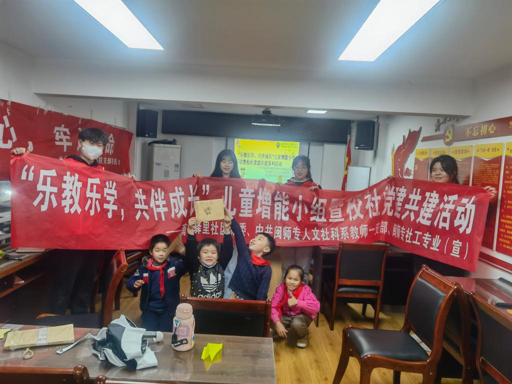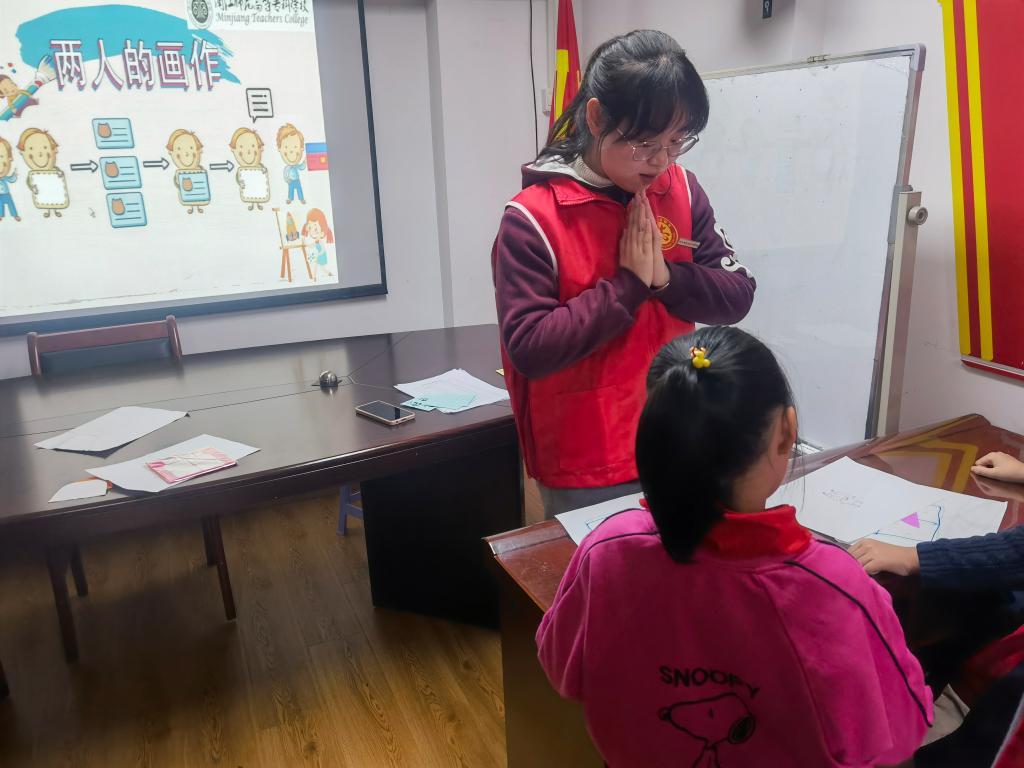 为进一步探索新时期儿童社区服务新模式,充分发挥朋辈教育在社区儿童服务、社区“四点半”课堂中的重要作用,引领儿童健康成长成才,组织社区朋辈小组、搭建朋辈社区平台,助力儿童发展。闽江师范高等专科学校社会工作专业携手福州市鼓楼区南街街道驿里社区,在专业教师和社区工作人员的支持指导下,20社工班增能实践小分队在驿里社区文化站四点半学堂开展了“乐教乐学,共伴成长”儿童增能小组工作系列活动第二期。