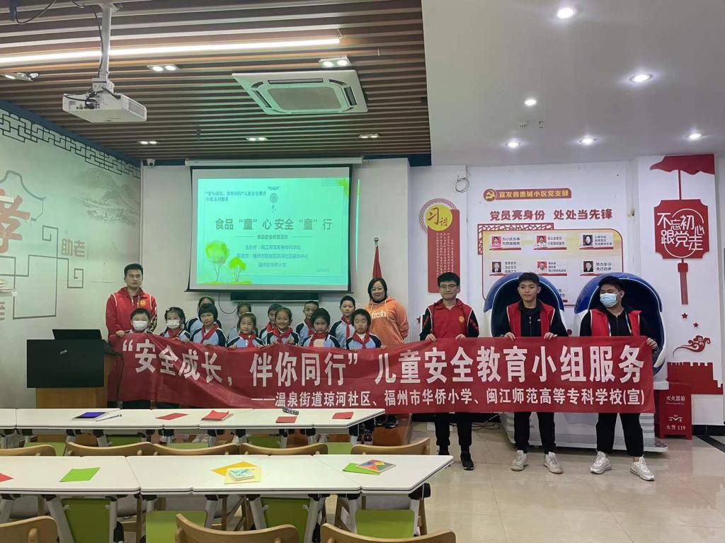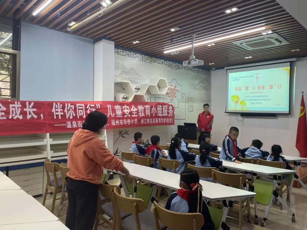 2021年12月14日下午,闽江师范高等专科学校人文社科系社工专业的学生鼓楼琼河社区开展儿童安全教育小组工作活动,带领福州市华侨小学二年级学生了解各种关于食品安全的知识。此次食品安全活动秉持着增强对健康意识的主旨来普及知识,提高学生们的食品安全意识能力。