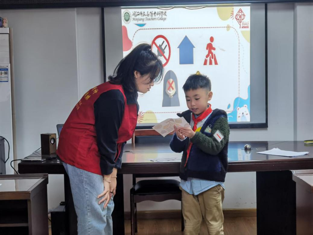 首次互动于12月4日开展,本次活动旨在普及儿童安全知识,提高儿童防范意识,预防和减少各类事故的发生,创造和谐安全的社区环境。活动现场,社工专业的同学们和小朋友们融洽相处,和小朋友们共同学习。活动一共分为五个环节,第一个热身小游戏“前线支援”通过分组传递物资的方式,调动了小朋友们的活动积极性,活跃了气氛,让小朋友们更加亲近彼此;第二个环节“安全我知道”通过让小朋友们贴贴纸后发言的形式,让主持人刘若楠同学了解了小朋友们对安全隐患的认识程度后接入对安全小知识的讲解,让小朋友们更好地理解了安全知识;第三个环节“先学后用”用播放安全知识视频的方式,引入第四个部分“我来试试看”,让小朋友们现学现用,和主持人积极互动,有助于他们加深对安全知识的印象;最后一个环节是“安全大考验”,主持人邀请小朋友们发言,让他们把在活动中学到的知识用自己的语言诉说出来,达到巩固安全知识的目的。活动结束后,五名社会工作专业的同学和小朋友们进行了合影留念,并给小朋友们送上了精美的礼物,邀请他们下次再参加活动,为下次“乐教乐学,共伴成长”系列活动的举办做了衔接。