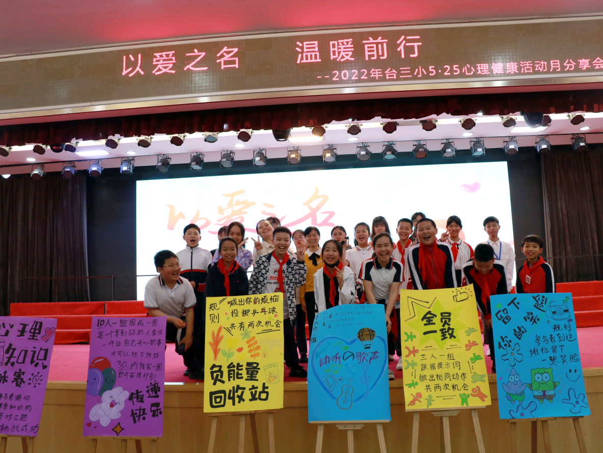 在游园活动开始前,胡艳珍老师对在“5.25我爱我”心理健康活动月中获奖的同学举行了颁奖仪式。由郑校长,林校长,胡艳珍老师和谢姗姗老师为获奖的同学颁奖,并由三年级的心灵手语操获奖队伍为大家上台进行手语操表演。接下来,心理游园活动便井然有序地展开了。此次活动共设有六个摊位,分别为:心理知识趣味赛,传递快乐,负能量回收处,动听的歌声,全员一致,留下你的笑脸。由12位学生担任摊主,八位实习老师负责协助、维护秩序,活动开展过程中,同学们非常积极活跃,活动现场热闹非凡。心理知识趣味赛使同学了解更多关于心理健康的知识;传递快乐让参与同学回忆自己开心的事并说出分享;负能量回收处则是说出自己的烦恼并以投乒乓球的形式投出;动听的歌声考验的是同学们的艺术素养;全员一致则让同学们更加默契。
