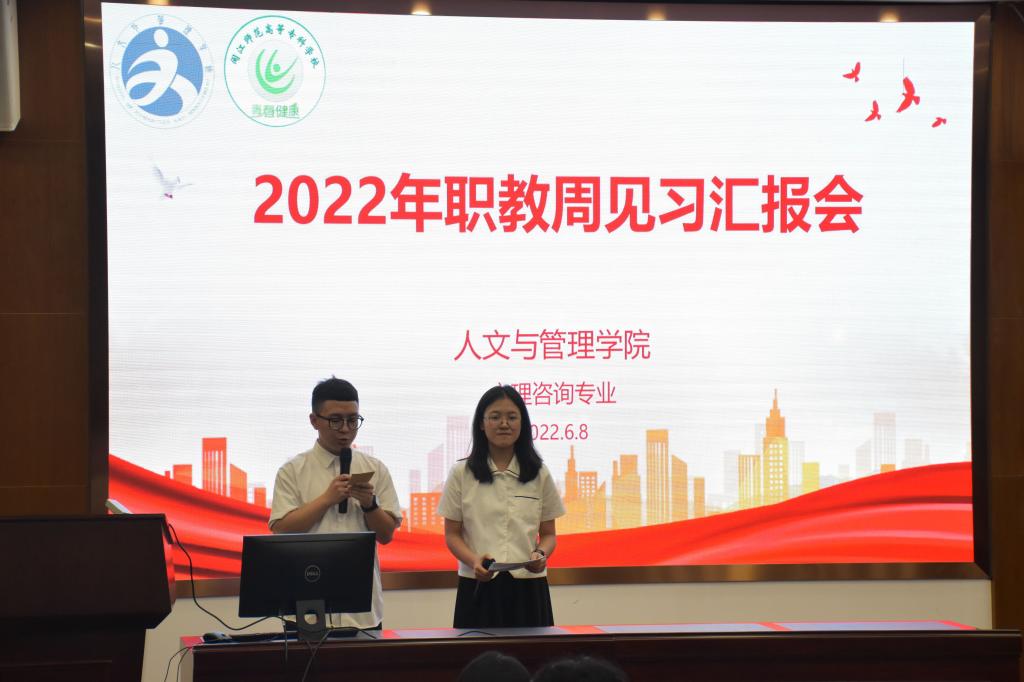 为进一步提升心理咨询专业学生的专业技能和知识水平,做好心理咨询专业见习、青春健康基地校外实践工作的巩固与改进,同时帮助21级心理咨询专业进一步了解实习工作。6月8日,人文与管理学院心理专业于仓山校区学术报告厅开展2022年职教周专业见习暨青春健康社会实践汇报会。本次汇报会由青春健康基地同伴社社长吴地萱、20级心理咨询专业谢翔雨主持,心理教研室主任谢姗姗、20级辅导员夏春英、青春健康基地负责人张宝英及全体心理咨询专业同学参加。