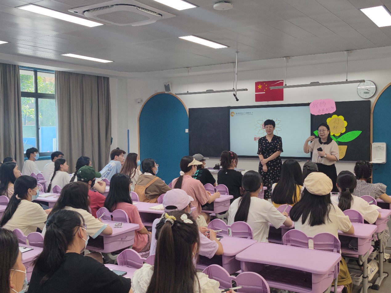 活动中,学员们观摩了小学心理健康教育专业周丽老师主讲的“我的奇思妙想”心理健康课。在互动交流中,周丽老师通过讲解课程的设计理念,介绍了绘本续编的模式,教授学员们如何通过语文学科的绘本结合心理健康课,强调树立课程大融合的概念,开展特色心理健康教育课程。附属实验小学心理健康教育专业的文锐老师还详细地介绍了教学的内容和模式,并针对同学们的问题进行答疑,在过程中,分享课程中,以小学年龄段的特点,通过孩子们喜爱的方式,鼓励小孩子进行分享。当孩子在课堂中,受到挫折时,要掌握“恰到好处的挫折”,培养小学生的坚韧品质。活动最后,在周丽老师的带领下,专业师生参观了校园。