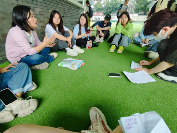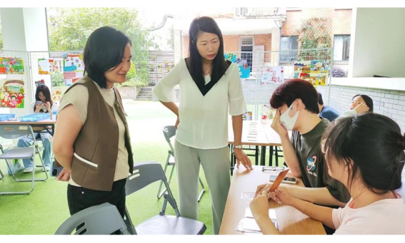 在“525心理健康日”活动中,校内指导老师张宝英与实习队成员共同探讨活动要领,陈姗老师与张宝英老师交流教学心得,为实习队成员们打开思路。