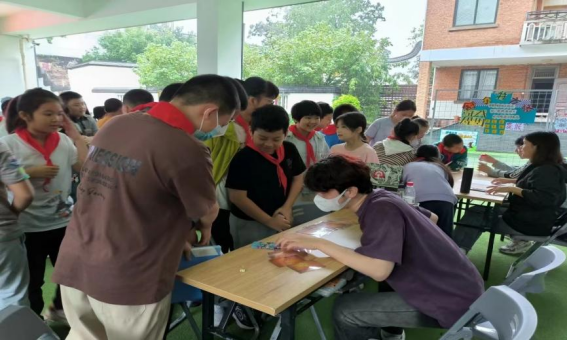 在“525心理健康日”期间,实习队成员展开“悦己、阅己、越己”主题游园活动。游园活动由“曼陀罗绘画”、“房树人”、“OH卡体验”、“舒尔特方格”、“沙盘游戏”组成。本次“悦己、阅己、越己”为主题的游园活动中,给四、五、六年级的学生们普及心理健康知识,让学生树立“自我了解、自我欣赏”的意识,促进学生人格健全发展。