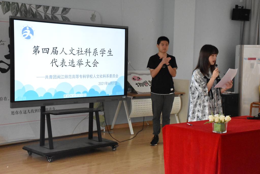 6月7日中午,人文社科系在仓山校区3号楼209团辅室举行了闽江师范高等专科学校人文社科系第四届学生代表大会选举活动。出席本次活动的有人文社科系团委书记黄益群老师、学生党支部书记叶懿蛟老师、人文社科系团委学生会19级全体成员、19级各班学生代表以及团委学生会全体工作人员。本次会议由办公室干事李怡欣主持。