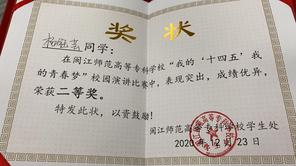 为在全校大学生群体中兴起学习贯彻党的十九届五中全会精神的热潮,引导广大青少年切实增强对全面建设社会主义现代化国家的认知认同,行动自觉,把青春智慧和奋进力量凝聚到落实全会确定的各项目标任务上来,按照党中央部署和省市要求,我校于12.23在旗山校区组织开展“我的青春梦”演讲比赛。