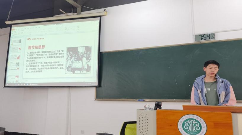 党史是中国共产党自诞生以来,领导中国人民为了实现中国梦的探索史、奋斗史、创业史和发展史。党史是我们的精神之钙,是我们的理论之魂,是我们的奋进之力。各班代表通过分享“土地改革”、近代中华民族的历史任务和辛亥革命等《中国共产党简史》中的节选片段,让我们感受到了党艰难而又伟大的发展历程。中国共产党从势单力薄到众志成城,领导人民取得举世瞩目的成绩和历史性的飞跃,只有在中国共产党的领导下,才能实现民族振兴、国家富强和人民幸福。