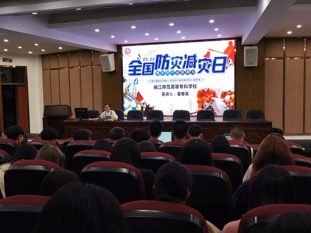 5月5日晚18:30,为了增强同学们的防灾减灾意识,普及防灾减灾相关知识,提高同学们的避灾自救能力。我校人文社科系2020级辅导员夏春英老师在仓山区图书馆三楼多功能报告厅开展了“防灾减灾日”主题教育,20行政管理1、2班和20心理咨询1、2班全体成员准时参加。