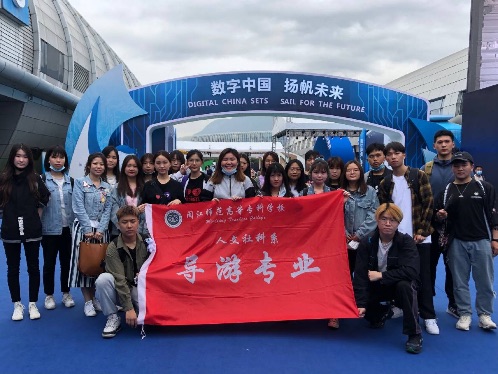 为增强学生对会展行业的直观认知,拓宽专业学习的纵深层面,有效促进学生知识、素质、能力协调发展。2021年4月27日,17导游五年专前往海峡国际会展中心观摩第四届数字峰会暨会展课程实训,本次活动由梁虹老师组织并带队前往。