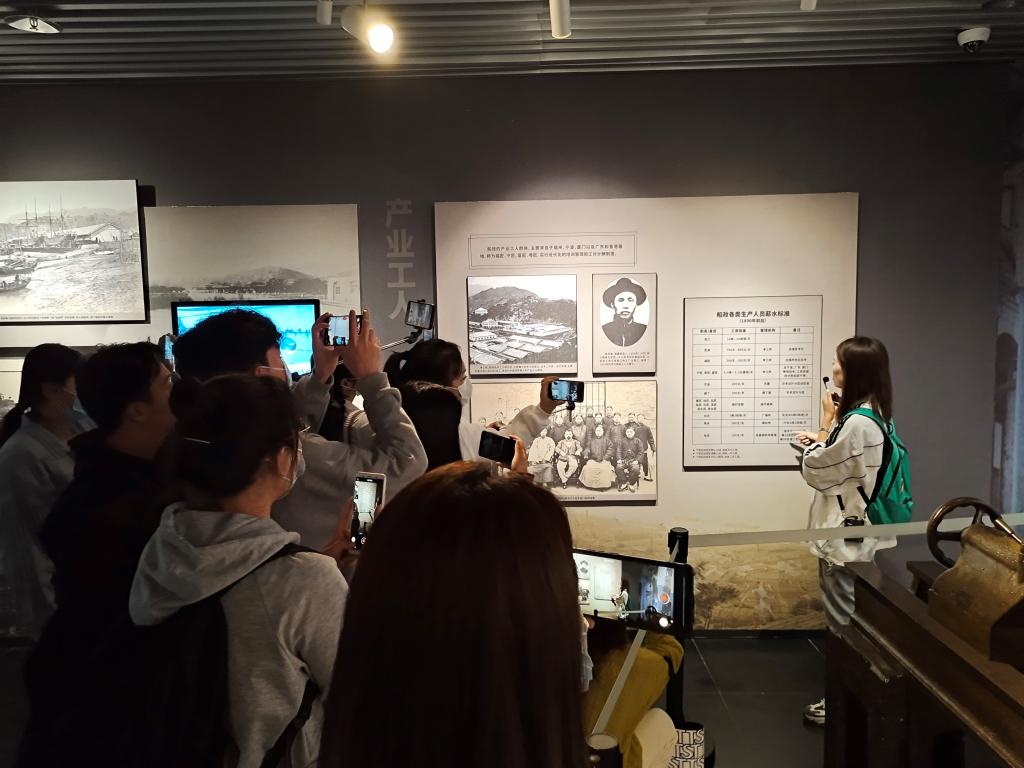 首先抵达“中国船政文化博物馆”,由许老师为同学们进行实地讲解。在老师的讲解下,同学们了解了船政的各项成就、船政遗迹、与船政有关的各种文物,以及马尾船政在组织体系、运行机制、管理模式、教育模式等方面的成效;切身感受到诸多爱国仁人志士的丰伟形象及其先进思想,以及中华民族砺志进取、虚心好学、博采众长、勇于创新、忠心爱国的优秀文化理念。