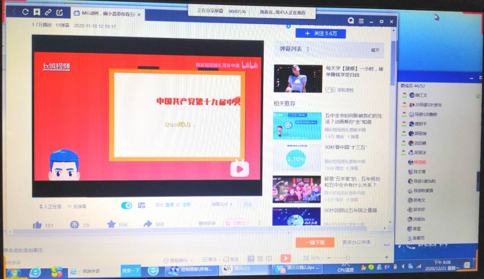 本次活动首先由组织委员发起群接龙签到。签到完成后由文娱委员发起团歌链接,团员们跟唱团歌。接下来团支书将通过链接形式组织大家观看“中国共产党第十九届中央委员会第五次全体会议公报”的相关视频。观看完相关视频后郭丽坤同学为大家准备的充满感情的朗诵环节。活动的最后我们通过分享知识竞猜环节,让同学们在积极参与的同时更加深了对此次“学习宣传贯彻党的十九届五中全会的精神”的内容活动。大家纷纷表示参加完这次活动对自己今后很长一段时间的人生规划产生了很大的影响,并决心用行动去践行。